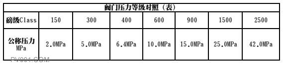 PN国标体系是指在120℃下所对应的压力,而CLass美标是指在425.5℃下所对应的压力(除150LB以260度为基准外,其他各级均以454度为基准),150磅级(150psi=1MPa)的25号碳钢阀门在260度时候,许用应力为1MPa,而在常温下的许用应力要比1MPa大得多,大约是2.0MPa。所以,一般说美标150LB对应的公称压力等级为2.0MPa,300LB对应的公称压力等级为5.0MPa等等。所以在工程互换中不能只单纯的进行压力换算,如CLass300#单纯用压力换算应是2.1MPa,但如果考虑到使用温度的话,它所对应的压力就升高了,根据材料的温度耐压试验测定相当于5.0MPa。