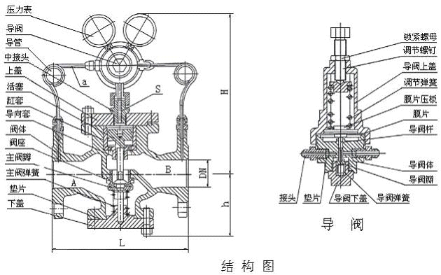 先导活塞式气体减压阀主要技术参数和性能指标: