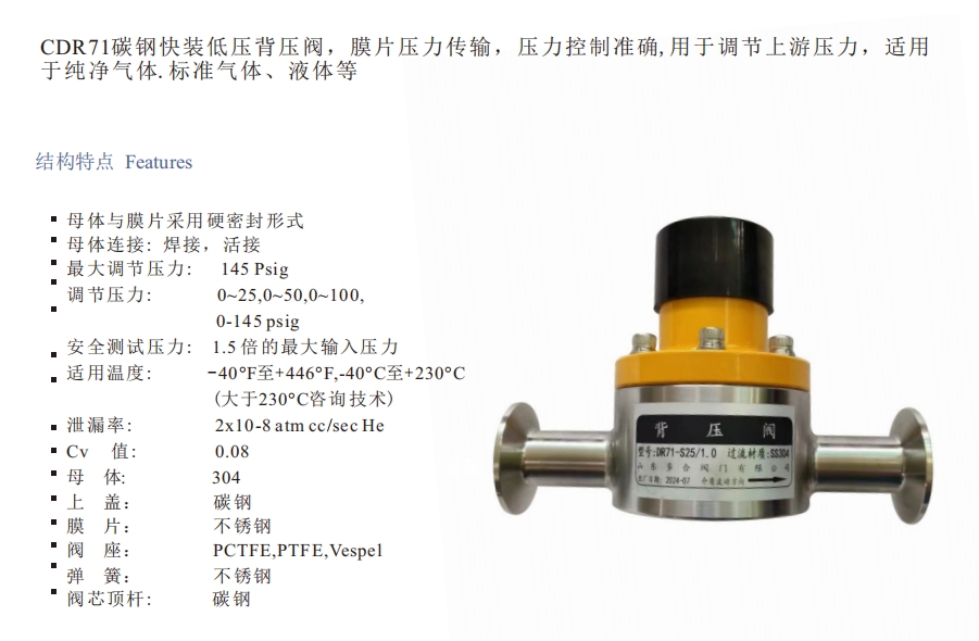 不锈钢膜片式中低压背压阀溢流阀安全泄