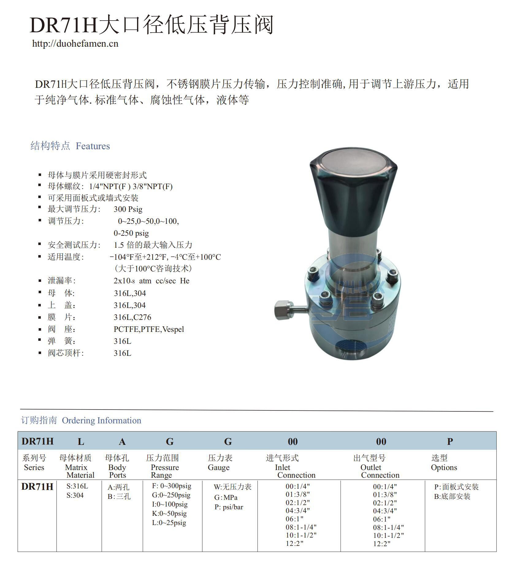 不锈钢大口径低压背压阀溢流阀管道膜片